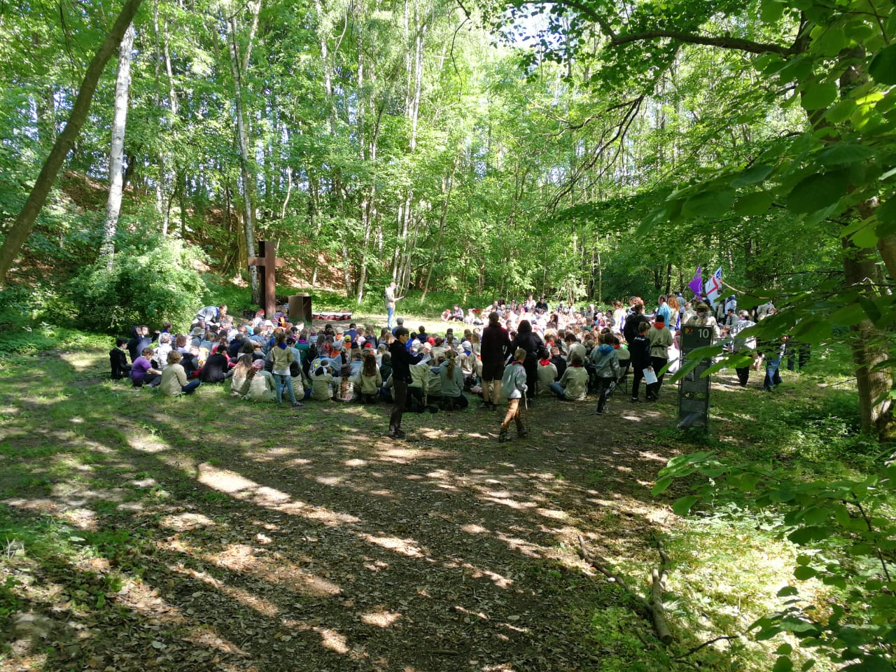 Dieses Jahr war ein ganz besonderes Pfingstlager: Zum ersten Mal seit sechs Jahren war nämlich wieder Ringelager. Das bedeutet, dass wir diesmal in Großzerlang nicht nur 150 sondern eher 1200 waren, die sich da den Platz geteilt haben. Außer dem VCP waren noch die DPSG, der BdP und der DPB da. Das sind die Verbände, die zusammen den rdp bilden (Ring deutscher Pfadfinderinnen und Pfadfinder). Eine große Sache also.